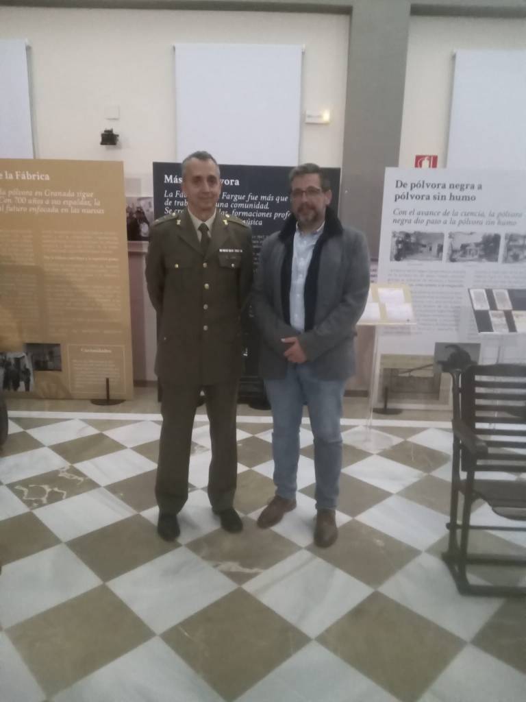 El Alcalde de Beas D. Manuel Luis López Fernández junto al Teniente Coronel Herrera en la inauguración de la exposición.